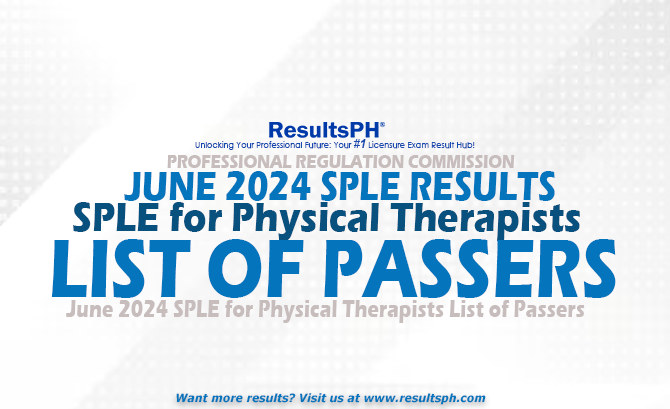| FULL RESULTS: June 2024 SPLE for Physical Therapists List of Passers |